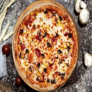 Domates Sos, Mozzarella, Sucuk, Salam, Sosis, Mantar, Köy Biberi, Çeri Domates, Mısır, Siyah Zeytin